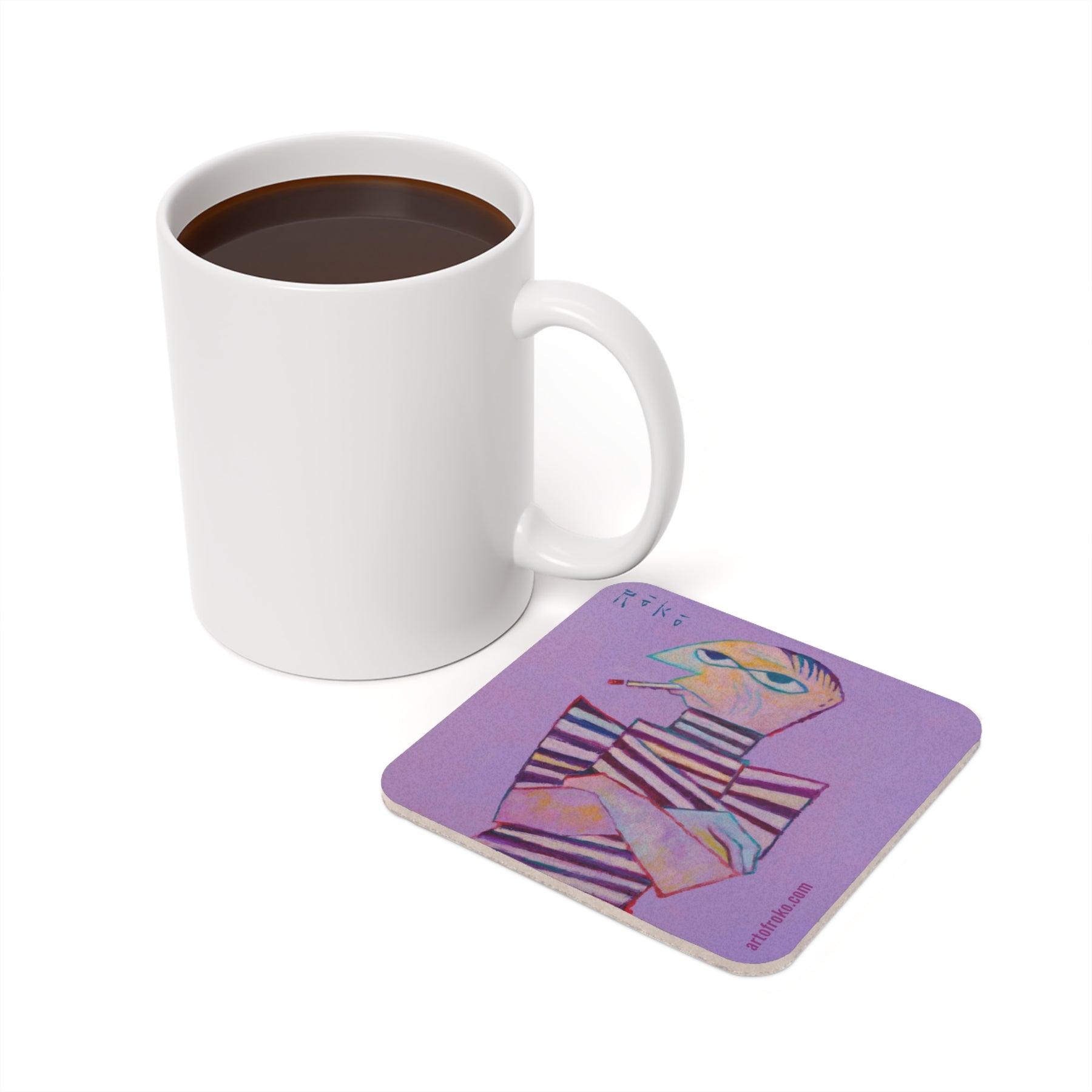 Build your own Roko coaster set! We've selected some of Tony's most iconic paintings to showcase on these high-quality reusable coasters that will be sure to be a conversation piece as you entertain guests at your next gathering. Each coaster is made with a high-gloss, coated hardboard top, and features a genuine cork bottom to prevent sliding. Uplift any table with a custom Roko touch.
