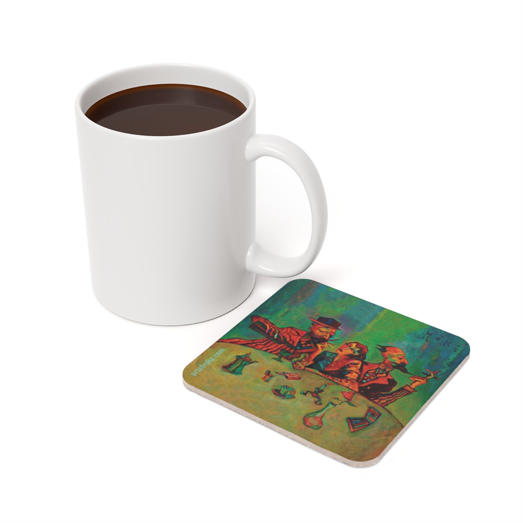 Build your own Roko coaster set! We've selected some of Tony's most iconic paintings to showcase on these high-quality reusable coasters that will be sure to be a conversation piece as you entertain guests at your next gathering. Each coaster is made with a high-gloss, coated hardboard top, and features a genuine cork bottom to prevent sliding. Uplift any table with a custom Roko touch.